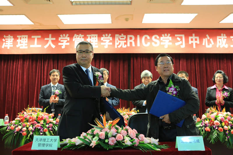 2012年10月24日北京金馬威工程咨詢有限公司周和生董事長參加天津理工大學管理學院RICS學習中心成立揭牌儀式,并向天津理工大學管理學院捐贈“建設項目全過程咨詢審計系統”軟件(價值145萬元),支持該校教學工作。