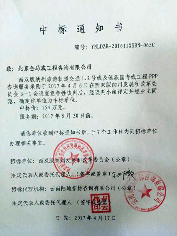 2017年4月,我公司成功中標西雙版納州旅游軌道交通1、2號線及傣族園專線工程PPP咨詢服務采購項目。