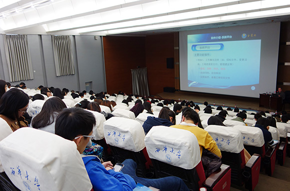 儀式結(jié)束后,周和生董事長為建筑與土木工程學(xué)院學(xué)生及相關(guān)部門工作人員作了題為“建設(shè)項(xiàng)目全過程投資管理及審計系統(tǒng)介紹”的學(xué)術(shù)報告。